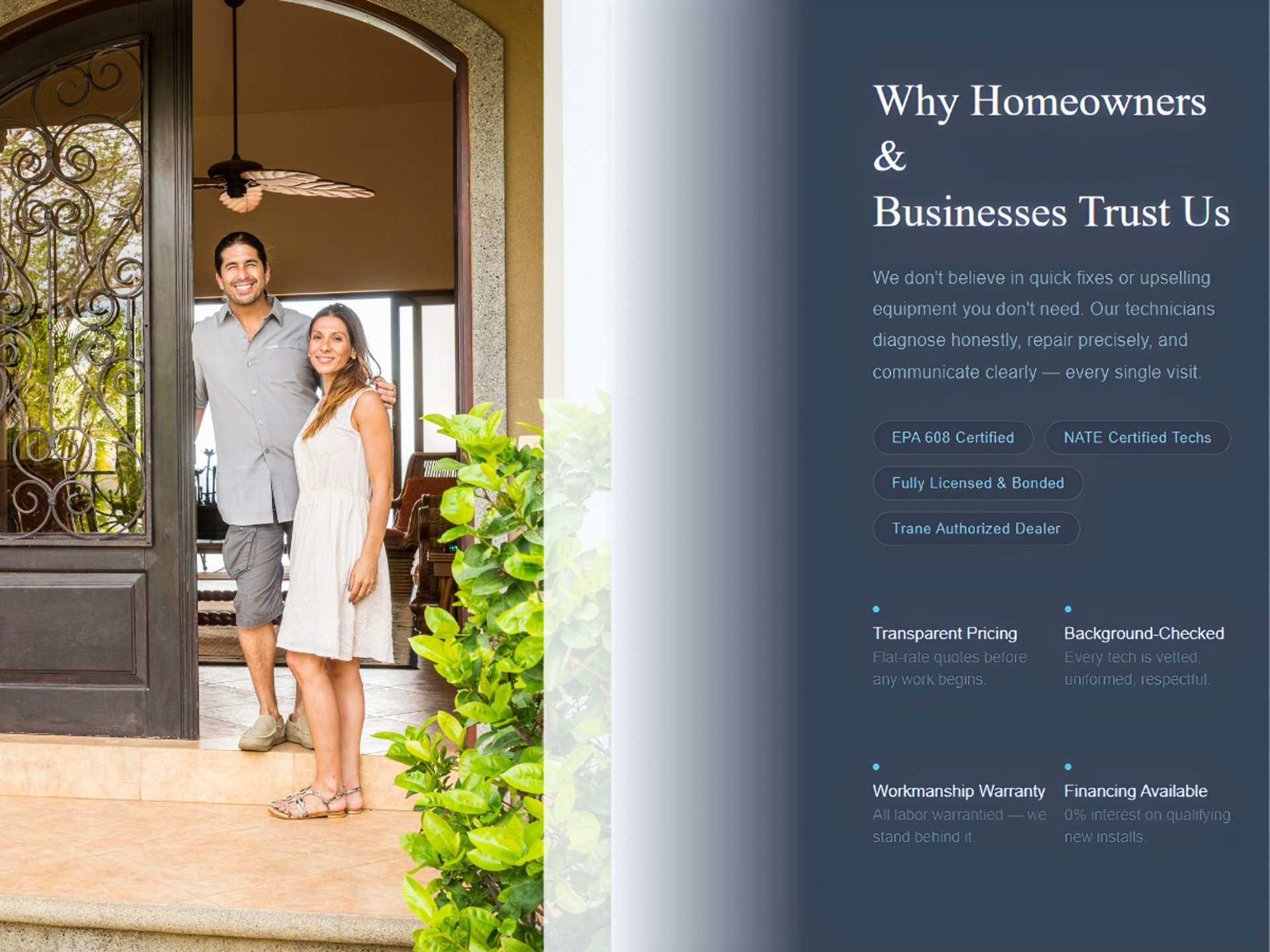 Our AC died at 6pm on a Saturday in July. They were at our door by 8pm, diagnosed by 8:30, and we were sleeping cool by 10. Absolute lifesavers." David & Maria C. Boca Raton,